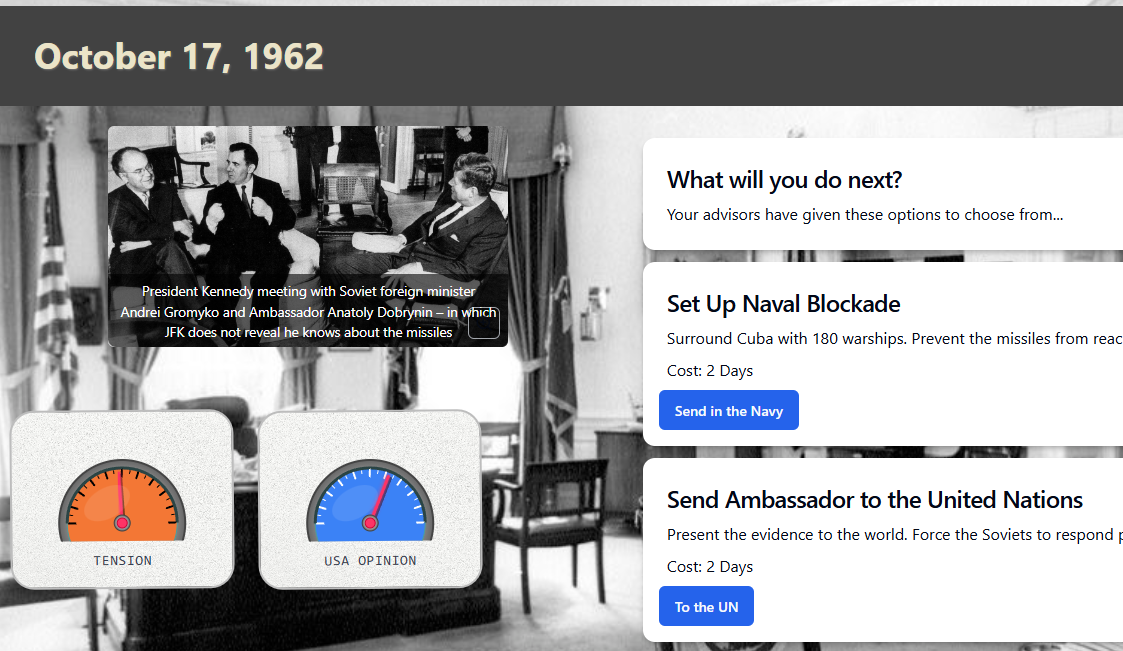 Navigate the choices of the Cuban missile crisis as President Kennedy.